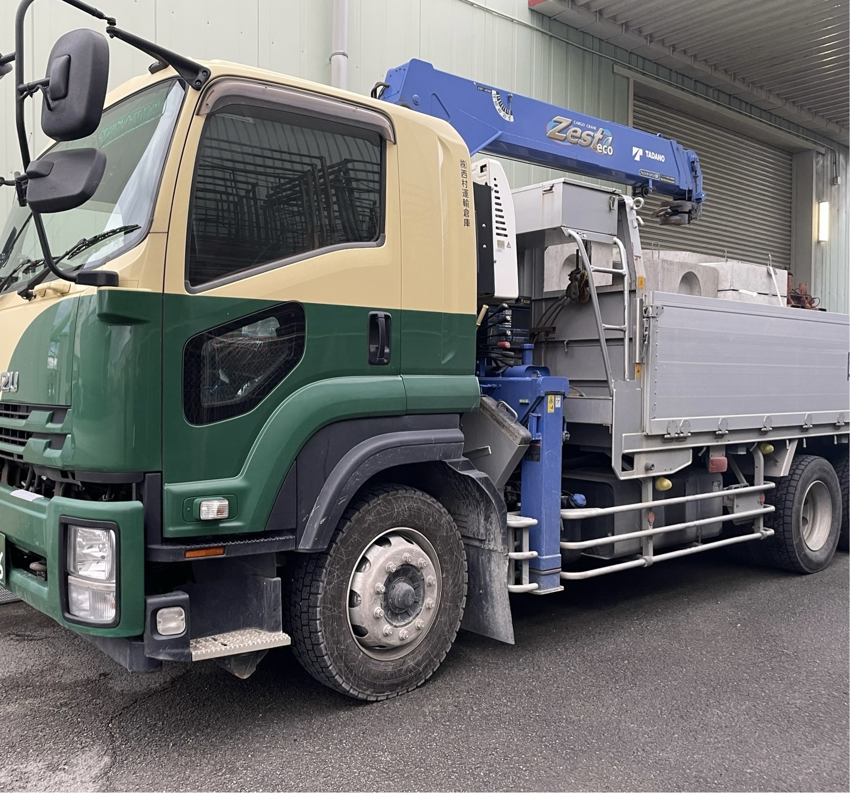 最大積載量9400kgのユニック車。コンクリート二次製品等の重量物も安全に配送します。
